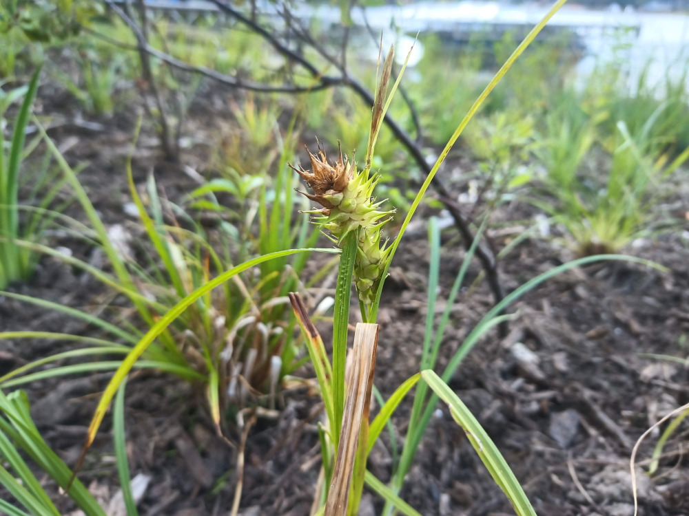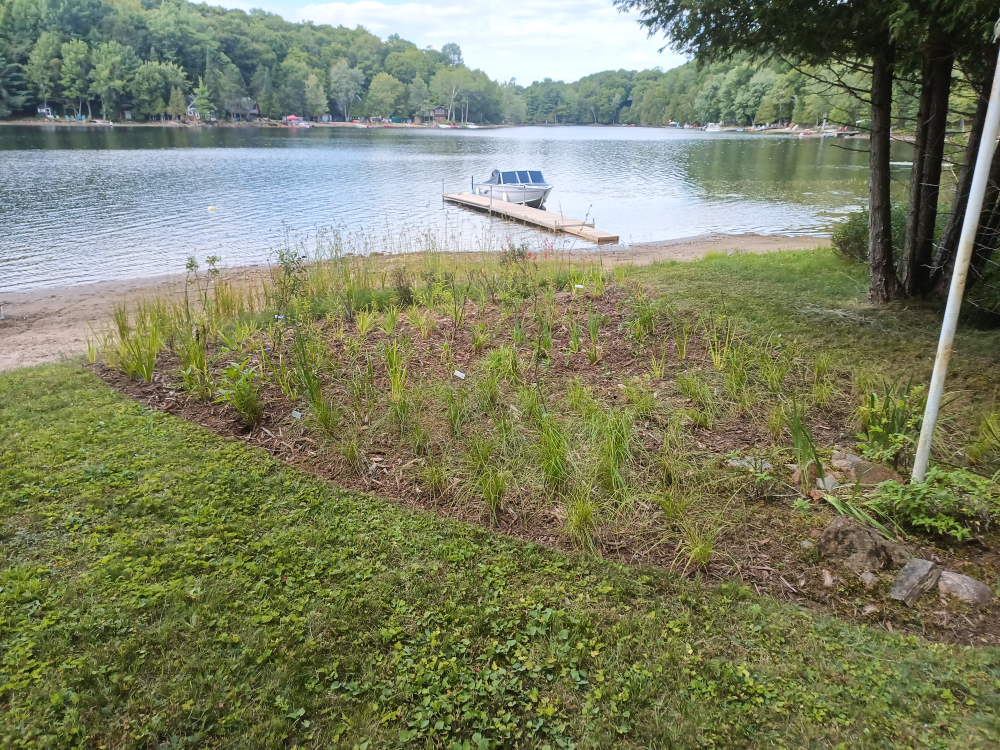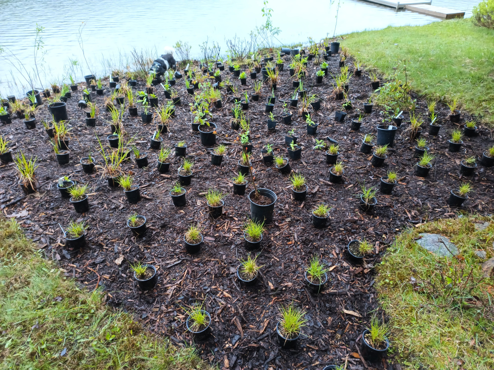 We replaced part of a lawn with a bed of moisture-loving shoreline plants. Installed July 2025.