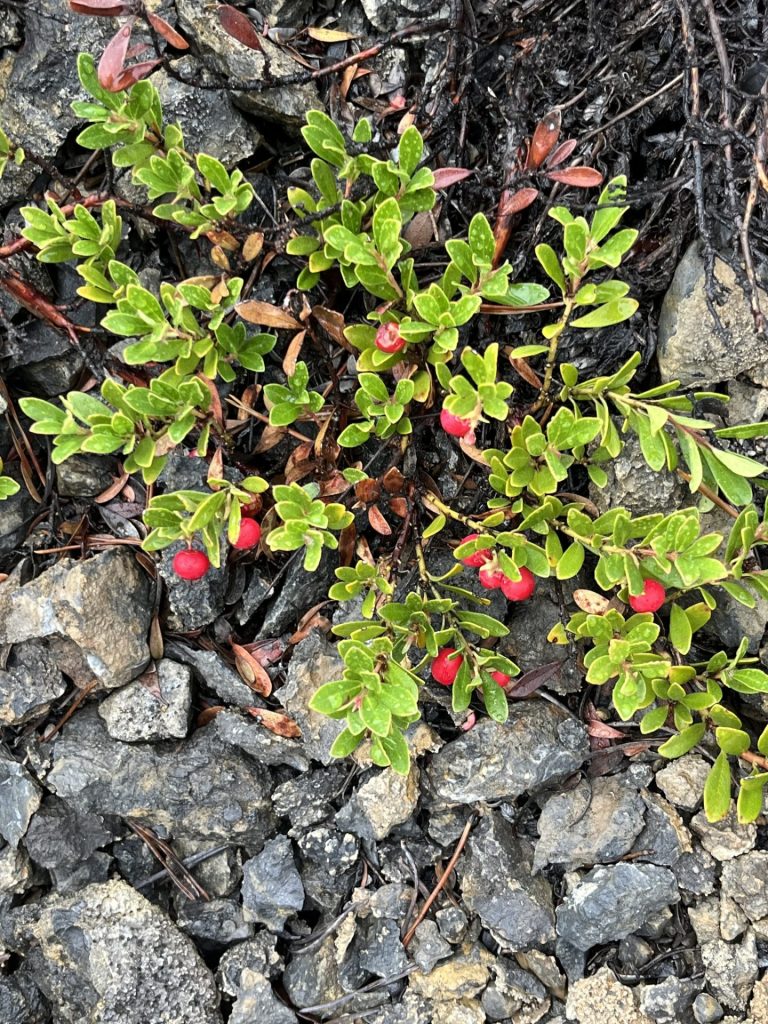 Evergreen groundcover growing 15-30 cm tall and spreading up to 1.8 m wide. Features small, leathery leaves and clusters of small, pink to white urn-shaped flowers in spring, followed by red berries. Prefers well-drained, acidic soils and full sun to partial shade. Extremely cold-hardy and drought-tolerant once established. Provides year-round interest and food for wildlife. Useful for erosion control on slopes and as a native alternative to non-native groundcovers.