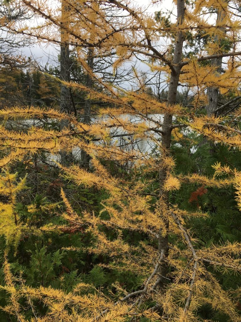 Phenology: New soft needles emerge mid-May. Small cones develop summer. Needles turn brilliant gold in October before dropping. Distinctive branching pattern visible in winter.